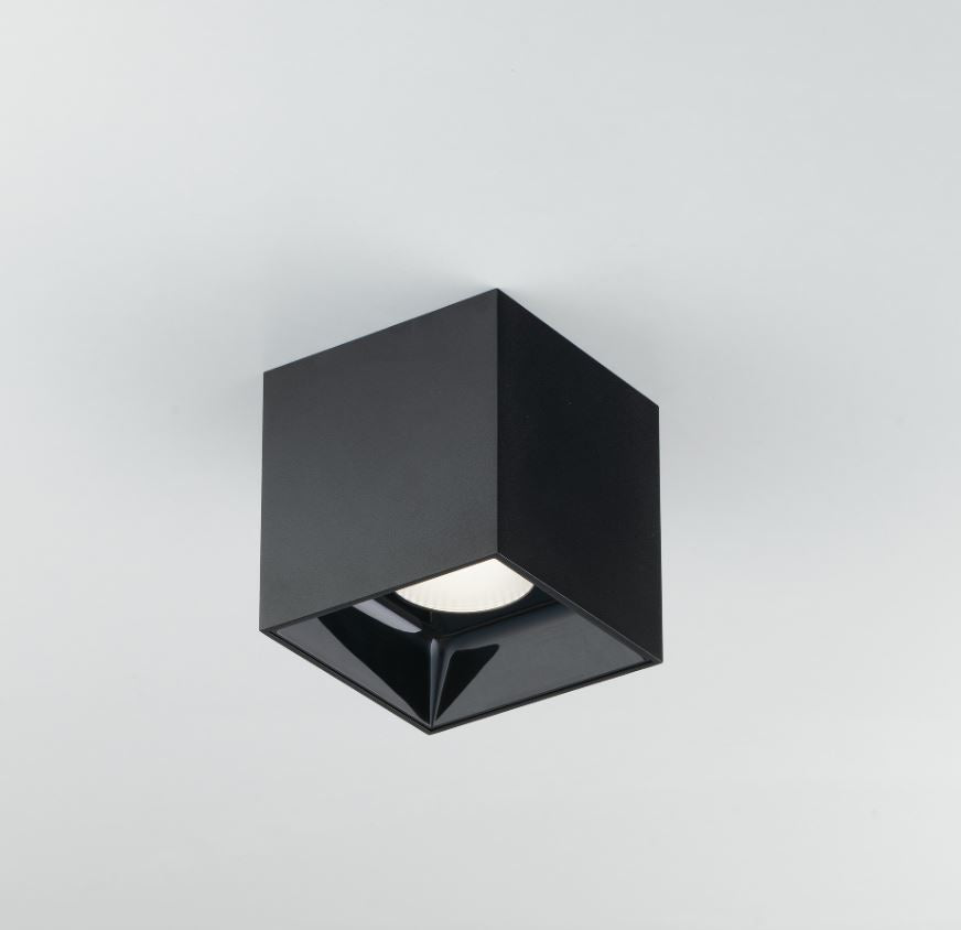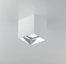 MIG Q20 is a cubic ceiling lamp made of white aluminum with a chrome reflector.