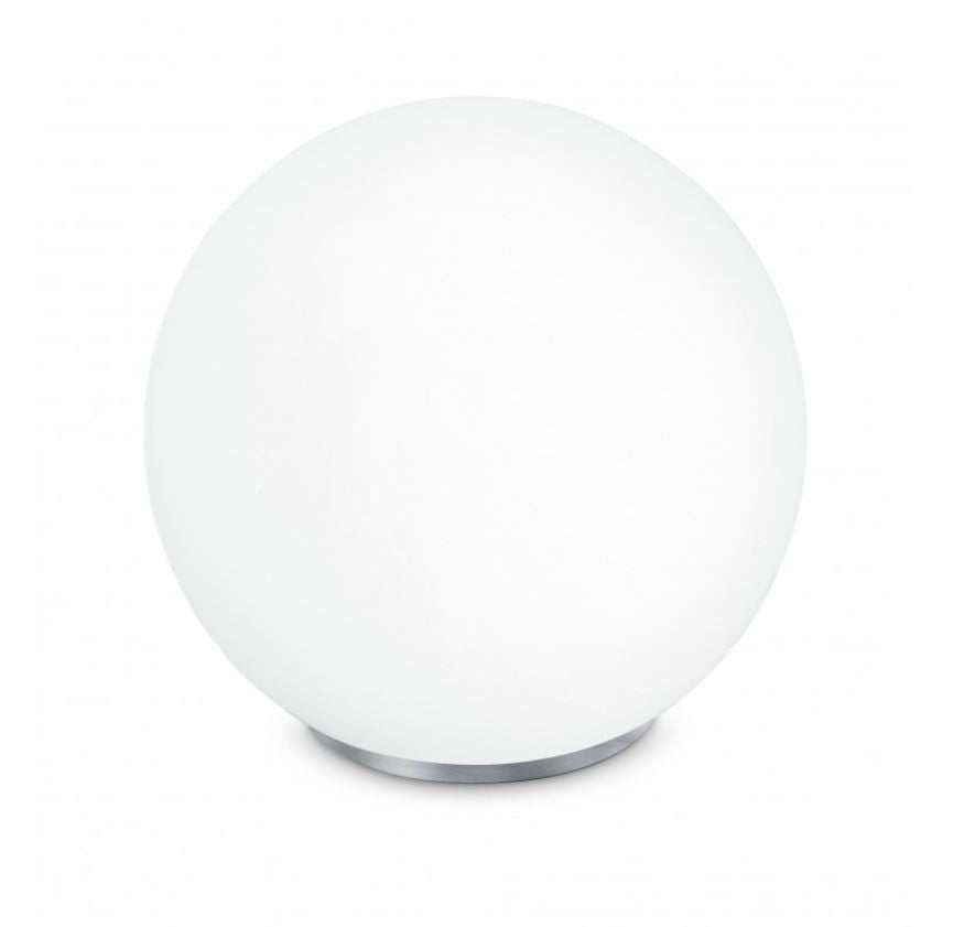 Table lamp from the CITY series consisting of a spherical diffuser in satin white glass with a diameter of 20 cm, with a chromed metal base.