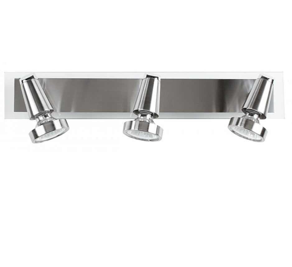 3-light spotlight wall lamp from the MIAMI series features a rectangular structure in brushed nickel-coloured metal embellished with a transparent glass frame.
