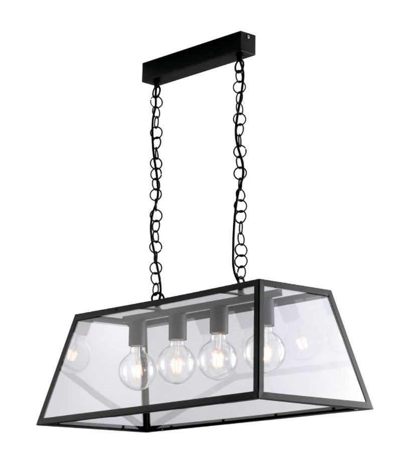 The LEXINGTON S4 pendant lamp features a structure entirely in matt black metal. Diffuser composed of transparent glass plates that allow a glimpse of the bulbs inside.