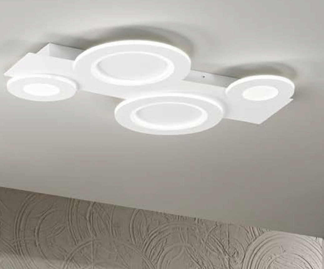 Plafoniera Bianca Decoro Geometrico Led 40w Temperatura Regolabile Collage 65cm Fan Europe