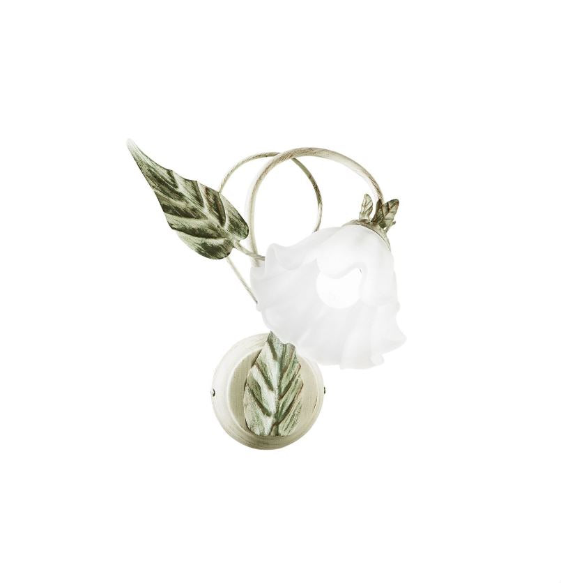 Applique Classica Ferro Battuto Avorio Paralume Vetro Bianco Isotta Fan Europe