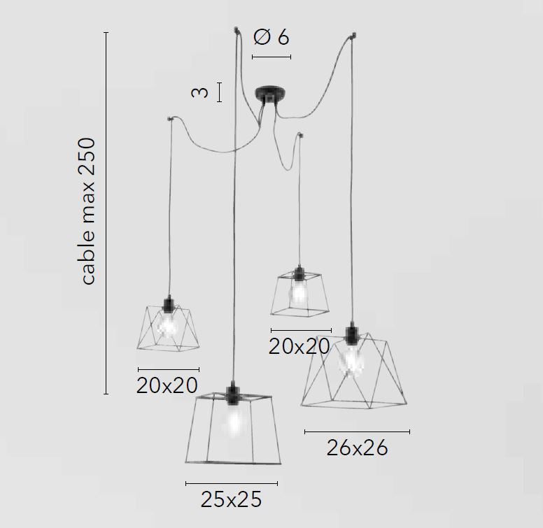 Lampadario BROOKLYN a Sospensione 4 Luci Led (E27) 250 cm In Metallo