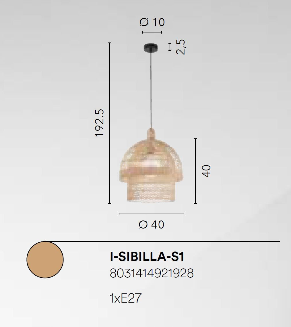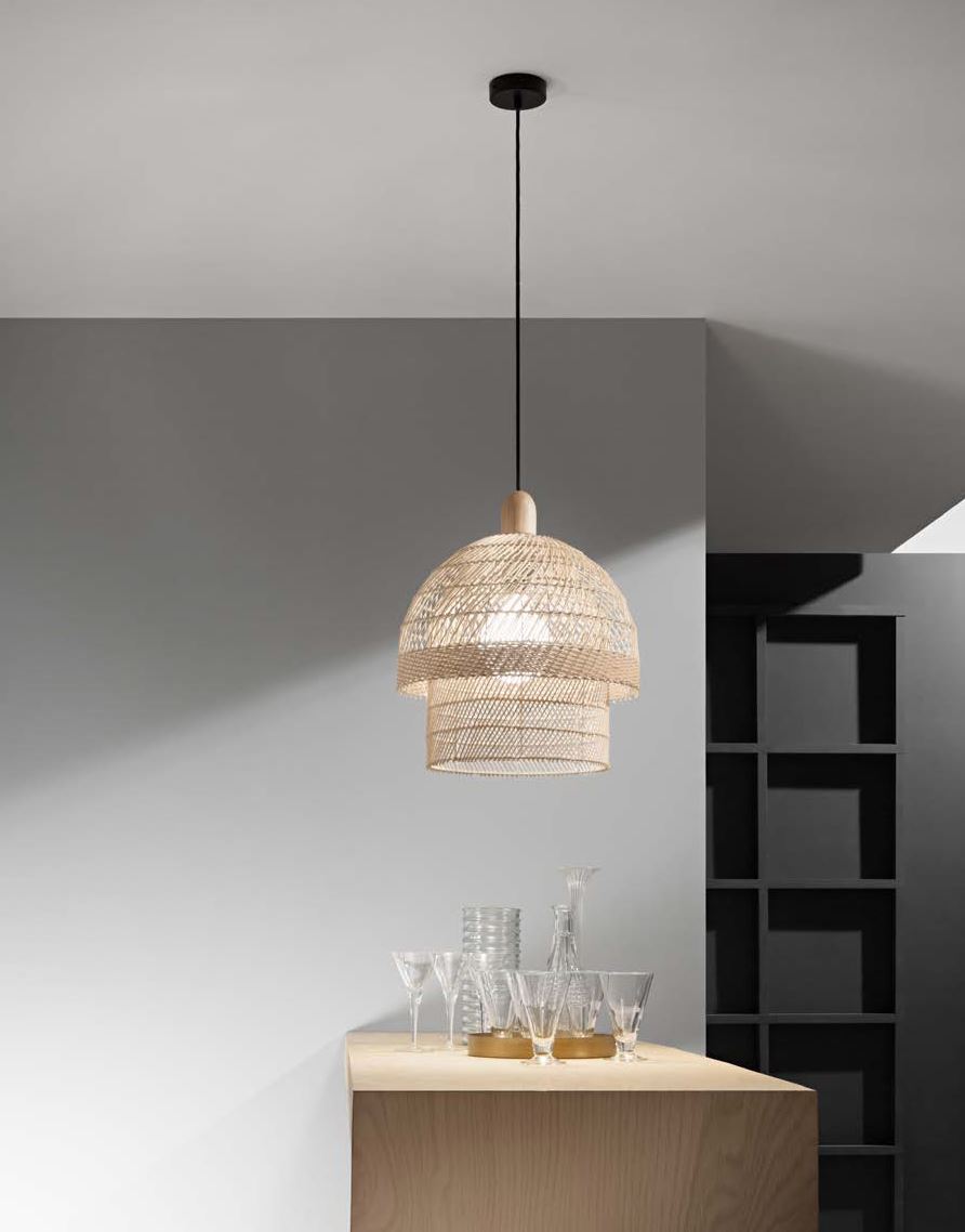 Lampadario SIBILLA a Sospensione 1 luce Led(E27) 193x40 In Rattan