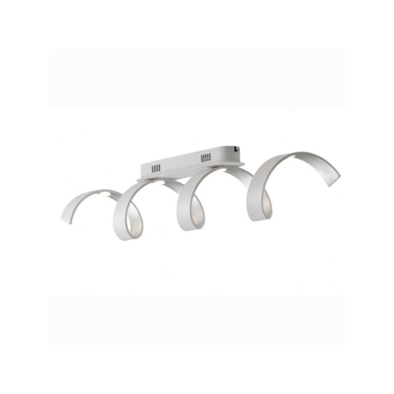 Plafoniera HELIXPL4 composta da una struttura in alluminio dalla forma a spirale molto originale. La luce viene diffusa in modo diretto verso il basso tramite i 4 piccoli diffusori posti nella parte superiore nella struttura.